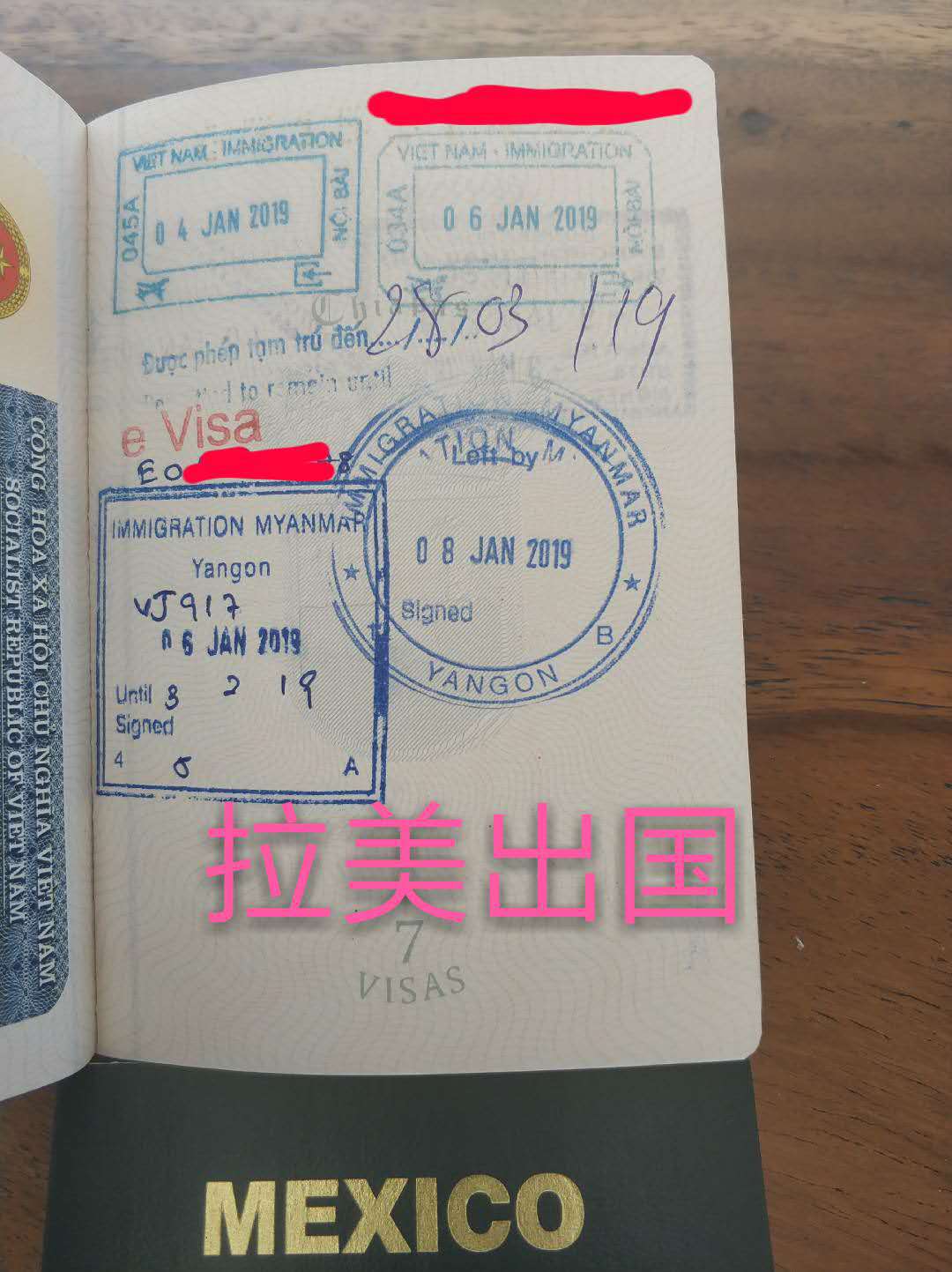 墨西哥护照出入境盖章
