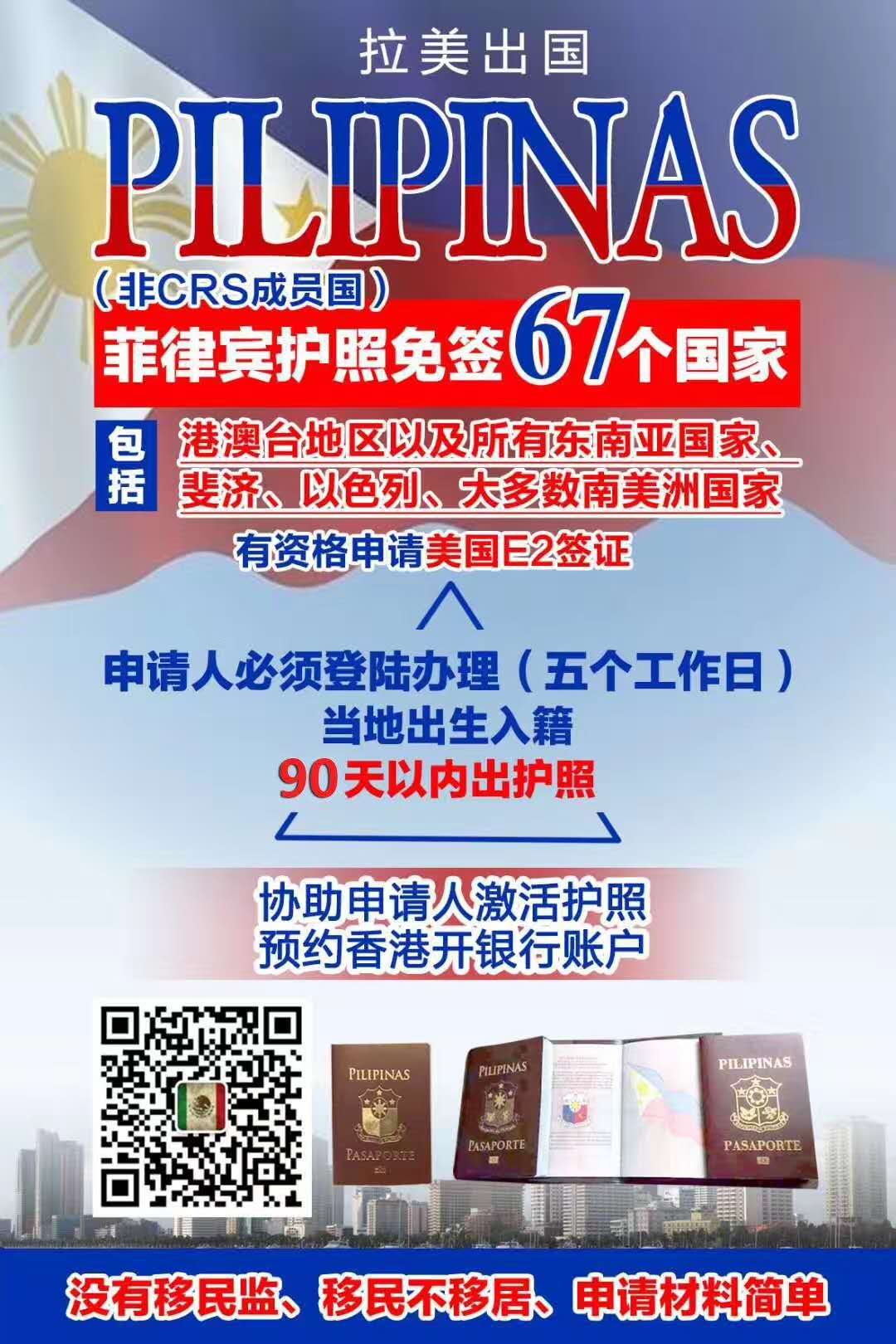 4. 菲律宾作为美国的贸易协定国,取得菲籍护照便于申请美国E2签证,可以把菲作为移民跳板。